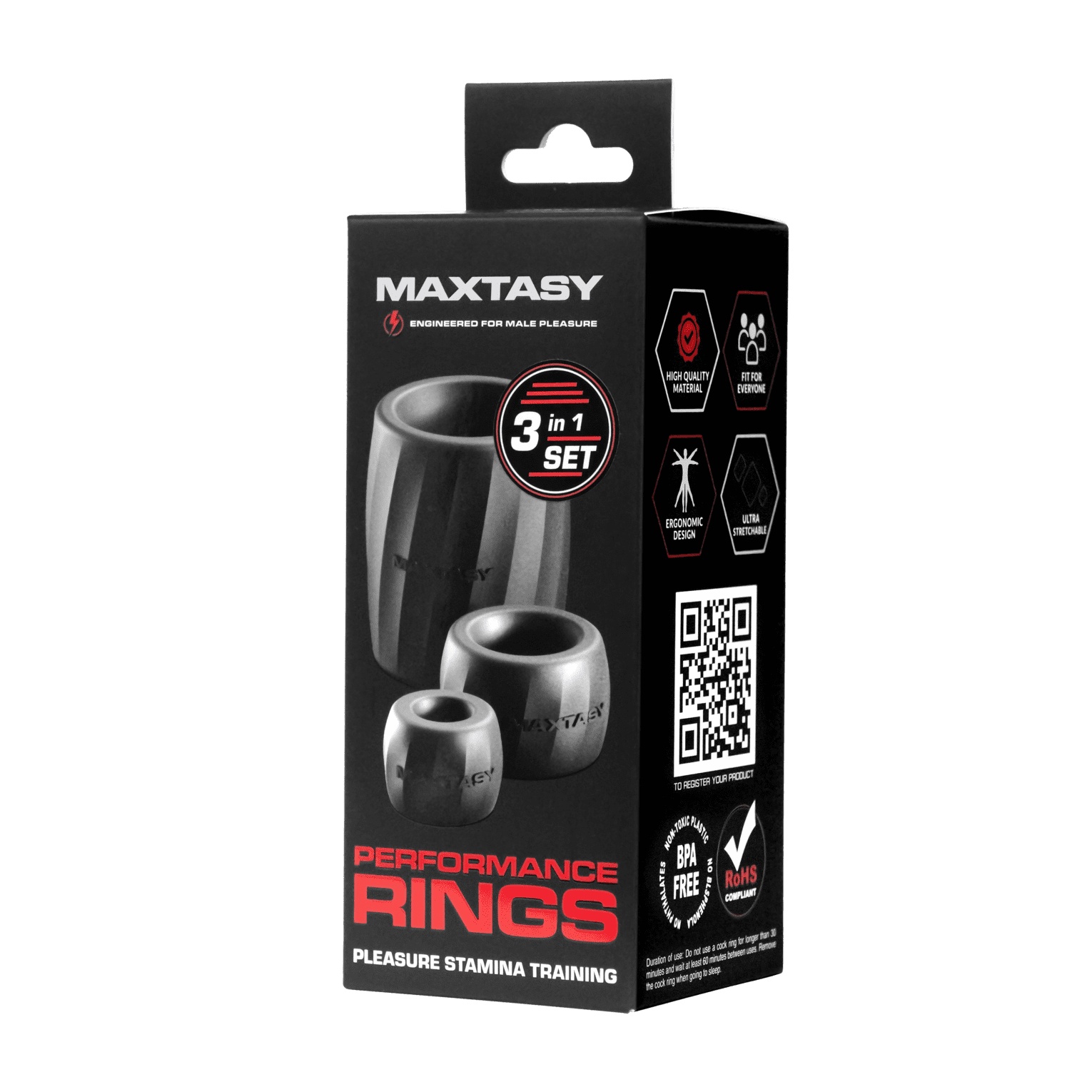 These ultra-stretchable penis rings adapt to any size, ensuring comfort and enhancing your stamina. Whether you’re seeking to prolong the moment or intensify the climax, the Maxtasy Performance Rings give you the control to enhance your every performance. For a truly explosive experience, use your rings with one of the Maxtasy Strokers for the ultimate performance and pleasure experience.